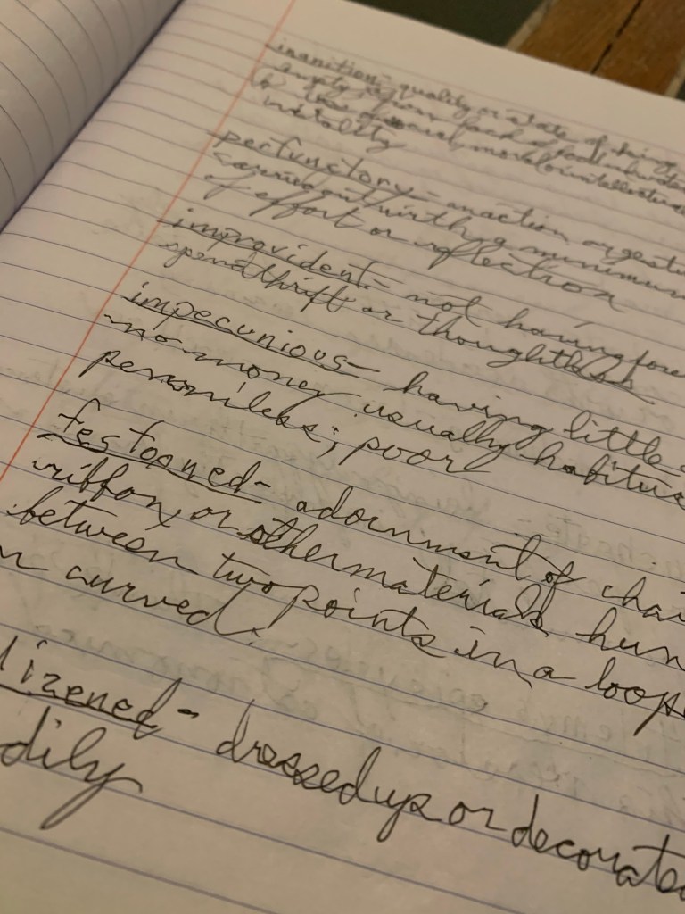 He used to just write out words in a notebook. He would write them down and then go back and write the meanings later. He always had a pencil. A mechanical one used for drafting.
