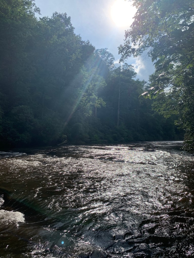 I did not find what I was looking for. I went looking for the Ellicott Rock initials. Major Ellicott put them on a rock in 1811 to settle a dispute over boundary lines for the Carolinas? He found a rock or a place them initialed it. How do you even get into a place you are asked to settle this kind of dispute? How do you get into a dispute like this? Obviously our boundaries are laid out and we don’t dispute them anymore. Anyway It was nowhere. The initials. That’s what I needed to see. I never found them so they don’t feel real to me. I need to go back. And find them. I need to know if this is true not just believe it.